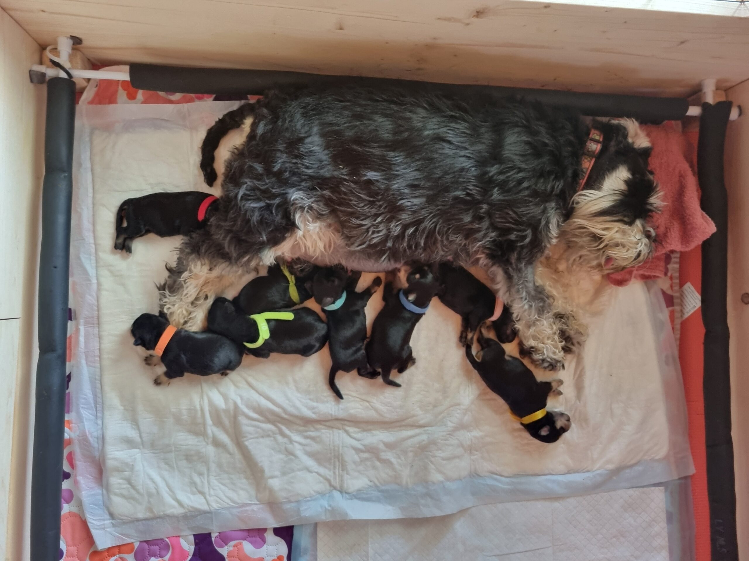 We’re happy to announce that our Zala Zophie has given birth to 8 puppies – 4 females and 4 males. The puppies will be ready to go to their new homes in early September 2025.